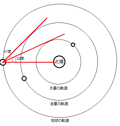 地球より太陽寄りにある、いわゆる内惑星と言われる水星と金星、これは地球から見てある程度の角度までしか太陽から離れません。